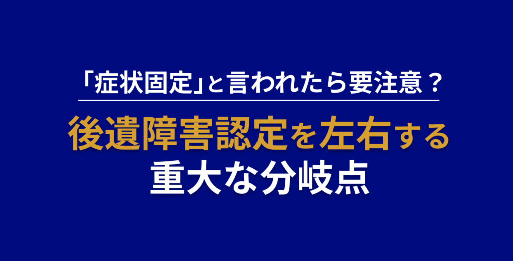 2019年12月 後遺障害の基礎知識 2019年12月21日 「症状固定」と言われたら要注意?後遺障害認定を左右する重大な分岐点 交通事故によるケガで治療を続けていると、ある時点で保険会社から「そろそろ症状固定の段階ですね」と伝えられることがあります。 この「症状固定」という言葉は、交通事故の実務において極めて重要な意味を持ちます。なぜなら、症状固定の判断ひとつで、その後の治療、後遺障害認定、賠償額のすべてが大きく左右されるからです。 「症状固定ですね」って言われた瞬間、被害者の方は『もう治療できないの?』って焦ります。でも実務では、ここが後遺障害認定の勝負どころです。焦って流されると、後から取り返すのが本当に難しくなります。まずは「その場で同意しない」が基本です。 症状固定の医学的な定義 症状固定とは、医学的に、 今後、治療を継続しても、症状の大幅な改善が見込めない状態 を指します。 完全に治癒した状態を意味するものではありません。痛みやしびれ、可動域制限などの症状が残っている場合でも、改善の見込みが乏しければ症状固定と判断されることがあります。 つまり症状固定とは、 「治った」という意味ではない 「治療の限界点に達した」という医学的評価 であり、治療経過の一区切りを示すものです。 症状固定は治療期間の終期を意味する 症状固定がなされると、実務上は、 治療が終了した ケガの状態が確定した と扱われます。 この時点を境に、事故対応は「治療のフェーズ」から「後遺障害・賠償のフェーズ」へと移行します。 ここが、被害者にとって最も重要な分岐点です。 症状固定後に請求できなくなるもの 症状固定と判断されると、原則として以下の費目はそれ以降、請求できなくなります。 治療費 通院交通費 入通院慰謝料 つまり、症状固定は、 保険会社が治療費を支払う義務が終了するライン でもあります。 そのため、症状固定のタイミングが早すぎると、 本来必要だった治療が打ち切られる 症状が十分に固まる前に治療が終わる 後遺障害認定に必要な医学的資料が揃わない といった重大な不利益につながる可能性があります。 症状固定の最終判断は「医師」が行う ここで重要なのは、症状固定は医学的判断であり、最終的に判断するのは医師であるという点です。 保険会社が「症状固定ですね」と言ってきても、 医師が症状固定と判断していない 医師がまだ治療継続の必要性を認めている のであれば、症状固定は成立しません。 しかし実務上は、 保険会社の意向に引きずられる 医師が深く説明しないまま症状固定と記載してしまう といったケースも少なくありません。 保険会社が症状固定を促す理由 保険会社が症状固定を早期に打診してくる背景には、明確な理由があります。 治療費の支払いを終了したい 事故対応を早く終結させたい 後遺障害認定を回避・抑制したい 症状固定が早まるほど、 治療期間は短くなり 医学的資料は薄くなり 後遺障害認定は不利になりやすい という構造があるためです。 症状固定と後遺障害認定の関係 後遺障害等級認定は、症状固定後でなければ申請できません。 つまり、 症状固定の時点で どのような症状が どの程度残っているか が、後遺障害等級を左右するすべての基礎情報になります。 この時点で、 診断書の内容が不十分 検査が足りない 症状の一貫性が記録されていない 場合、たとえ実際に強い後遺症が残っていても、等級非該当や低い等級にとどまるリスクが高くなります。 安易な症状固定が招く典型的な失敗例 実務では、次のようなケースが非常に多く見られます。 保険会社に言われるまま症状固定 医師と十分な相談をしないまま同意 後遺障害診断書を急いで作成 結果、非該当や14級止まり あとから「もっと治療を続けていれば」「検査を受けていれば」と後悔しても、症状固定後に状況を覆すのは非常に困難です。 症状固定前に考えるべき視点 症状固定を迎える前に、少なくとも以下の点は整理しておく必要があります。 症状は本当にこれ以上改善しないのか 痛み・しびれ・可動域制限はどの程度残っているか 生活や仕事への支障はどのレベルか 医学的にそれを裏付ける資料は十分か これらを踏まえずに症状固定を迎えることは、後遺障害認定における最大のリスク要因です。 石澤法務事務所が重視する「症状固定前後」の設計 石澤法務事務所では、後遺障害等級認定を専門に扱う立場から、 症状固定のタイミング 症状固定時点で残すべき医学的記録 後遺障害診断書に反映すべき内容 を逆算型で設計します。 単に「申請する」のではなく、 この症状を、この等級で評価してもらうために、症状固定時点で何が必要か を明確にしたうえで対応します。 症状固定は「終わり」ではなく「スタート」 症状固定は、 治療の終わり 事故対応の終わり ではありません。 むしろ、 後遺障害認定 賠償額の確定 将来の生活を左右する判断 が始まる最重要フェーズの入口です。 