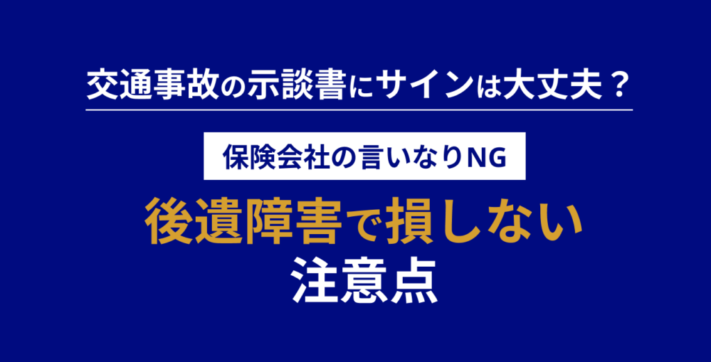2024年3月 後遺障害の基礎知識 2024年03月21日 交通事故の示談書にサインは大丈夫?保険会社の言いなりNG。後遺障害で損しない注意点 加害者側任意保険会社の言うとおりに署名押印してしまって良いでしょうか。 加害者側の任意保険会社から「今月で治療は終了です。計算書を送りますので、問題なければ署名捺印して返送してください」と言われました。 まだ首や腰に痛みやしびれが残っているのですが、保険会社の言うとおりに署名押印して返してしまっても大丈夫でしょうか。 A. 症状が残っているなら、署名押印は絶対に慎重に行うべきです 結論から言うと、症状が残っている段階で示談書に署名押印をするべきではありません。 なぜなら、示談書に署名・押印をすると、 その時点で 事故に関する賠償請求権が原則すべて終了 後から 後遺障害を理由とする追加請求が極めて困難 「知らなかった」「説明されなかった」は通らない という、取り返しのつかない法的効果が生じるからです。 示談書への署名押印が意味する法的な確定 加害者側保険会社が送ってくる書類は、単なる「支払確認書」ではなく、**示談書(免責証書)**であることがほとんどです。 この示談書に署名・押印をすると、 治療費 休業損害 慰謝料 将来の後遺症に関する請求 を含めて、すべて「解決済み」と扱われるのが原則です。 つまり、 「実は後から後遺症が悪化した」「やっぱり後遺障害だった」 という事情があっても、原則として追加請求はできなくなります。 保険会社が「治療終了」を勧めてくる理由 加害者側任意保険会社が、ある時点で 「症状固定ですね」 「今月で治療は終了です」 「これ以上は治療費をお支払いできません」 と伝えてくるのには、明確な理由があります。 それは、 治療が長引くほど支払額が増える 後遺障害認定に進まれると賠償額が大きくなる 早く示談を成立させた方が保険会社として有利 という、保険会社側の都合によるものです。 保険会社の担当者さんが悪い人、という話ではありません。仕組みとして「早く終わらせた方が会社として得」なんです。なので、言葉が丁寧でも、こちらは「利害が反対側」だと理解しておくのが大事です。『今月で終了です』と言われたら、まず“保険会社の打ち切りと症状固定の話は別”と捉えてください。 症状固定と示談は別の問題である点が重要 「症状固定」とは、医学的に、これ以上治療を続けても大きな改善が見込めない状態を指します。 しかし、 症状固定=示談してよい 症状固定=後遺症はない という意味ではありません。 むしろ、 症状固定後にこそ、後遺障害等級認定の手続きが始まる というのが正確な理解です。 症状が残っている場合に検討すべき後遺障害等級認定 首・腰の痛み、しびれ、可動域制限、頭痛、めまいなど、症状が残っている場合には、 その後遺症が自賠責保険上の「後遺障害等級」に該当するか 該当する場合、何級に認定される可能性があるか を明らかにする必要があります。 後遺障害等級が認定されるか否かで、 自賠責保険金 後遺障害慰謝料 逸失利益 など、賠償金の総額が数十万〜数百万円以上変わることも珍しくありません。 示談書に署名してしまうと失われる可能性がある権利 症状が残っているにもかかわらず、示談書に署名押印してしまうと、次のような権利を失う可能性があります。 後遺障害等級認定を受ける権利 自賠責保険からの後遺障害保険金 後遺障害慰謝料・逸失利益の請求権 搭乗者傷害・人身傷害保険との関係整理 「とりあえずサインして、あとで考えよう」という判断は、ほぼ例外なく不利な結果につながります。 行政書士に相談すべきタイミングは「署名前」 後遺障害等級認定手続きは、示談成立前に行う必要があります。 そのため、 症状が残っている 保険会社から治療終了を告げられた 示談書が送られてきた このタイミングこそが、後遺障害認定を専門とする行政書士に相談すべき最重要局面です。 相談が一番多い「手遅れパターン」は、サインしてから『やっぱり痛い』と連絡が来るケースです。ここから巻き返すのは現実的にかなり厳しくなります。逆に言うと、署名前なら、症状・通院・診断書の整え方で「取り得る選択肢」が残っています。迷ったら、サインする前に一回だけ確認してください。 石澤法務事務所が「署名前相談」を重視する理由 石澤法務事務所では、 示談書に署名する前の段階での相談 症状内容・治療経過の整理 後遺障害等級の可能性検討 被害者請求・再申請の戦略立案 を重視しています。 実際に、 署名前に相談したことで適正等級が認定されたケース 一度は示談寸前だった案件で数百万円規模の差が生じたケース も数多くあります。 示談書への署名は「最後の最後」に行う判断 症状が残っているなら、署名押印は待つ 示談書にサインすると原則やり直しはできない 後遺障害等級認定の可能性を先に検討する 専門家に相談するのは署名前が最重要 後遺症が残って