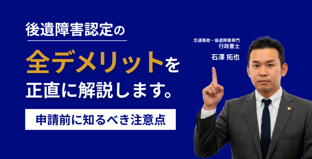 後遺障害コラム 弁護士と行政書士の役割の違い 2026年01月02日 交通事故で弁護士と行政書士はどう違う?正しい依頼の順番を解説 交通事故に遭った後、「弁護士に依頼すべきなのか」「行政書士でもいいのか」と、専門家の選び方に悩まれる方は少なくありません。 結論から言えば、弁護士と行政書士は役割が異なり、使い分けが非常に重要です。どちらが良い・悪いという話ではなく、依頼するタイミングと目的を間違えないことが、結果を大きく左右します。 示談交渉の場面では、弁護士の役割が活きます まず、示談交渉の段階においては、交渉の代理権を持つ弁護士に依頼するのが合理的です。 弁護士は、 加害者側保険会社との示談交渉 裁判や調停といった法的手続き 損害賠償額の増額交渉 といった「紛争解決」を専門とする職業です。 そのため、後遺障害等級がすでに確定しており、賠償額の交渉フェーズに入っている場合は、弁護士に依頼することで大きなメリットを得られるケースがあります。 ただし、弁護士費用が発生するため、賠償額とのバランス(採算)が合うかどうかを見極めることも重要です。 行政書士は示談交渉より前のタイミングで利用すべき 一方で、行政書士が力を発揮するのは、示談交渉よりも前の段階です。 具体的には、 治療を続けたが、痛みやしびれが残っている むち打ち症などの後遺症が改善しない 後遺障害に該当するのか分からない といった状況になったとき、後遺障害等級認定の手続きを行う専門家として行政書士が関与します。 後遺障害等級は、その後の賠償額を大きく左右する極めて重要な要素です。にもかかわらず、この段階を軽視したまま示談交渉に進んでしまい、本来認定されるべき後遺障害が評価されないまま解決してしまうケースも少なくありません。 交通事故の専門家の正しい使い方は「順番」が重要です 交通事故後の専門家利用において、もっとも合理的な流れは次の通りです。 治療を継続したが、後遺症が残ったと感じた段階で、後遺障害専門の行政書士に相談する 後遺障害等級認定の申請(被害者請求など)を行う 等級が認定された後、その等級を前提に賠償額を検討する 賠償額が大きく、採算が合う場合に弁護士へ示談交渉を依頼する この順番で進めることで、 後遺障害の評価を最大限反映できる 示談交渉を有利な条件で進めやすくなる 不必要な費用負担を避けられる といったメリットがあります。 「いきなり弁護士」より「まず後遺障害の評価」が重要な理由 交通事故の被害者の方の中には、事故後すぐに弁護士へ相談される方も多くいらっしゃいます。 もちろん、ケースによってはそれが適切な場合もありますが、後遺障害が残っている可能性がある場合には注意が必要です。 なぜなら、後遺障害等級が確定していない状態では、どれだけ賠償額を増やそうとしても「土台」が固まっていないからです。 後遺障害等級は、慰謝料・逸失利益などの算定に直接影響します。つまり、後遺障害の評価を正しく行わなければ、示談交渉で取り戻せる金額にも限界があるのです。 石澤法務事務所は「後遺障害認定」に専門特化しています 当事務所は、交通事故後遺障害の等級認定に専門特化し、これまで数多くの後遺障害案件に携わってきました。 後遺症が後遺障害に該当するかの判断 医療調査を踏まえた被害者請求 認定結果を見据えた資料の構成 といった分野において、知識・経験・実績を積み重ねています。 「弁護士に相談する前に、まず後遺障害の評価をしっかり行いたい」「後遺症があるが、等級が取れるか分からない」 そのような段階こそ、後遺障害を専門とする行政書士に相談する意味があります。 また、信頼のおける提携弁護士も紹介しております。 交通事故の専門家を正しく使い分けることが、納得できる解決への近道です 交通事故の解決は、「誰に頼むか」だけでなく、「いつ、どの専門家に頼むか」が重要です。 後遺症が残っている可能性がある場合は、示談を急がず、まず後遺障害等級の評価を行うこと。 そのうえで、必要に応じて弁護士と連携し、最終的な賠償解決を目指す。 これが、被害者にとってもっとも合理的で後悔の少ない進め方と言えるでしょう。 後遺障害の基礎知識 2025年12月31日 【要注意】「弁護士が入ると賠償金が増える」は本当?交通事故賠償の本質とは? 交通事故に遭った際、「弁護士に依頼すれば賠償金が大幅に増える!」という広告をよく見かけますよね。しかしその内容、本当は事実ではない部分もあります。 今回は、「賠償金が増える理由は何なのか?」を冷静に解説し、ネットでよく見かける誤解についても詳しく説明します。 「弁護士が入ると大幅に賠償金が増える」は半分ウソ「後遺障害に認定されると大幅に賠償金が増える」が正解 確かに、交通事故の被害者が弁護士に依頼すると、保険会社から提示された金額より多くの賠償金を受け取れるケースはあります。これはいわゆる「弁護士