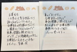 石澤先生この度は大変お世話になり誠にありがとうございました。石澤先生の的確なアドバイスと親身なご対応のおかげで無事に問題を解決することができ、心より感謝申し上げます。石澤先生にお任せして本当によかったと、家族一同喜んでおります。